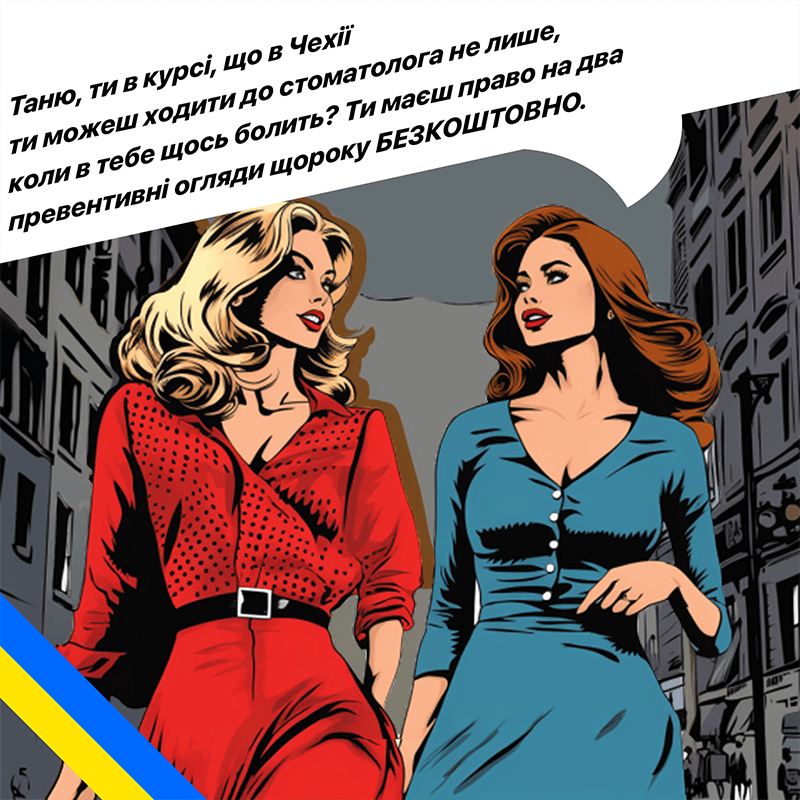 Ze zmíněného průzkumu dále vyplynulo, že ukrajinští uprchlíci nespoléhají na oficiální informační zdroje a raději věří tomu, co jim řeknou přátelé a další lidé hovořící jejich rodným jazykem. Zároveň většina lidí, kteří vyhledali útočiště v ČR, jsou ženy. Proto vizuály kampaně zobrazují dvě kamarádky, z nichž jedna druhé radí, jak má postupovat. Kampaň přináší informace o nároku na bezplatné preventivní prohlídky u praktického lékaře, zubaře a gynekologa, o asistenci při hledání lékaře, o příspěvcích zdravotních pojišťoven z fondů prevence nebo o existenci pacientských organizací. Z reklamy na sociálních sítích mohou lidé prokliknout na webovou stránku, která každé téma blíže vysvětluje. Na tvorbě těchto textů se podíleli lékaři a lékařky i VZP, aby byla garantována věcná správnost poskytovaných informací.